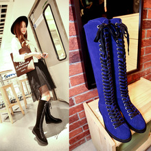 2015秋冬熱賣女靴子系帶休閑長靴歐洲站***全牛皮***女靴子平底