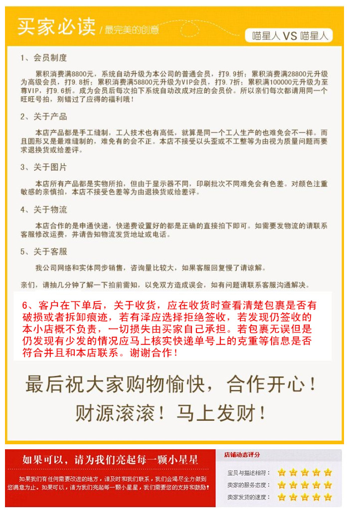 特別聲明:由一件代發(fā)的產(chǎn)品或者免費(fèi)拿樣的產(chǎn)品如果非本店責(zé)任(除:貨物發(fā)少發(fā)錯(cuò))有要要求退款換貨的一律不予處理。特殊情況可以聯(lián)系客服進(jìn)行協(xié)商。