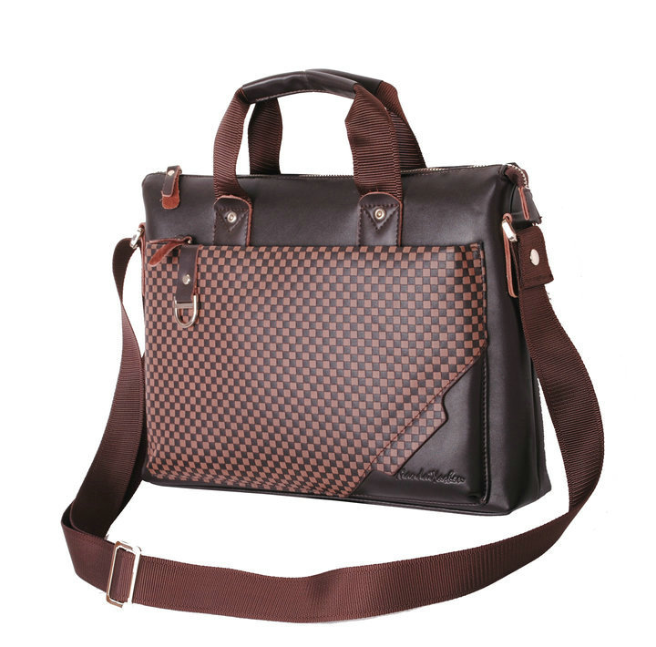 ***男包廠家 熱賣(mài)男士單肩休閑商務(wù)手提兩用包 6610橫款菱形格紋