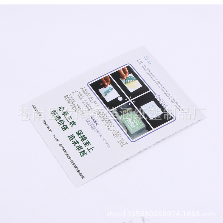 蒼南縣龍港鎮(zhèn)佳涵紙塑制品廠是靜電貼、停車提示卡、PP文件袋、廣告扇、無紡布袋、PP、PVC、便簽、無紡布等產(chǎn)品***生產(chǎn)加工的公司,擁有完整、科學(xué)的質(zhì)量管理體系。蒼南縣龍港鎮(zhèn)佳涵紙塑制品廠的誠信、實力和產(chǎn)品質(zhì)量獲得業(yè)界的認(rèn)可。歡迎各界朋友蒞臨參觀、指導(dǎo)和業(yè)務(wù)洽談。