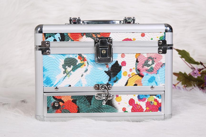 供應(yīng)精美彩色鋁合金化妝盒,帶抽屜鏡子 ***化妝箱 圖案定制