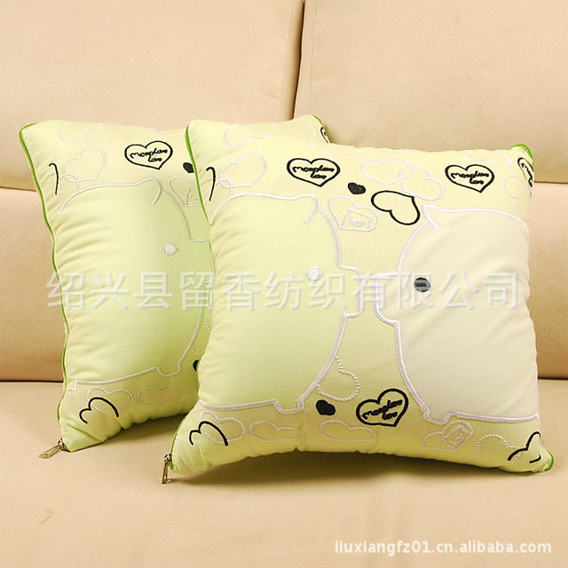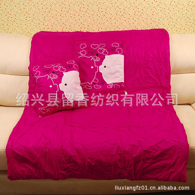 3、手感柔軟且富有彈性,內(nèi)含優(yōu)質(zhì)填充棉,清涼大方,古典的造型***典雅。***小巧的外形設(shè)計(jì),可抱可枕,也可做為家居用,多重選擇,更多享受。拉鏈拉開平攤后做為柔軟的空調(diào)涼被使用。