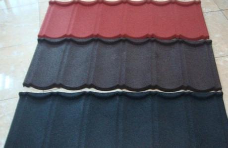 彩石面金屬瓦是以優(yōu)質壓型彩鋼板為基板,以優(yōu)質水性高分子樹脂為粘合劑,以彩色天然石粒為面層,經特