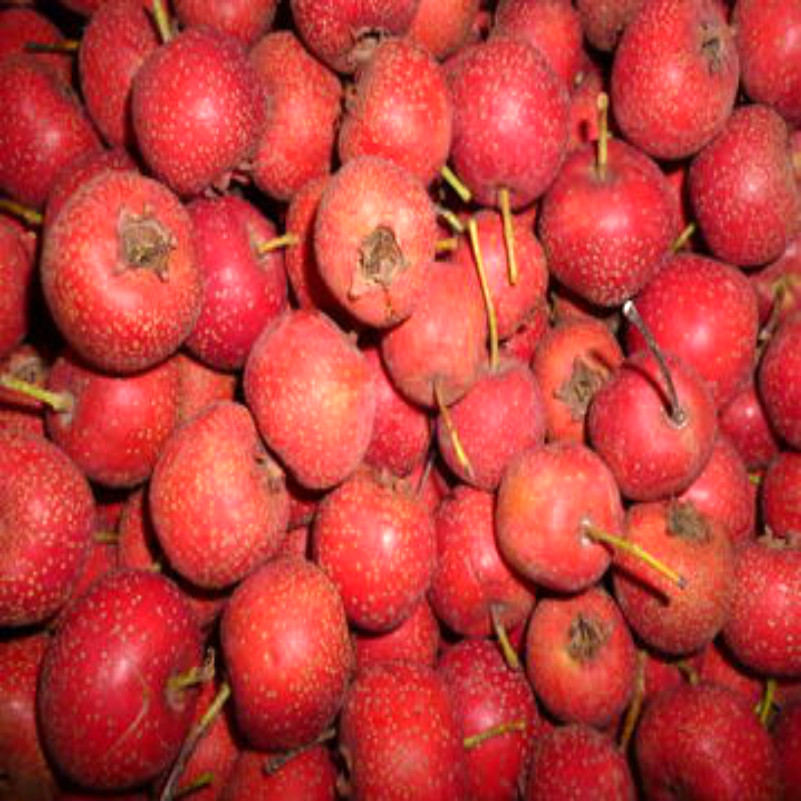 果實(shí)較小,類球形,直徑0.8~1.4cm,有的壓成餅狀。表面棕色至棕紅色,并有細(xì)密皺紋,頂端凹陷,有花萼殘跡,基部有果?;蛞衙撀洹I介喾N維生素、酒石酸、檸檬酸、山楂酸、蘋果酸等,還含有黃銅類、內(nèi)酯、糖類、蛋白質(zhì)、脂肪和鈣、磷、鐵等礦物質(zhì),所含的解脂酶能促進(jìn)脂肪類食物的消化。促進(jìn)胃液分泌和增加胃內(nèi)酶素等功能。中醫(yī)認(rèn)為,山楂具有消積化滯、收斂止痢、***化淤等功效。主治飲食積滯、胸膈痞滿、疝氣血淤閉經(jīng)等癥。山楂中含有山萜類及黃銅類等藥物成分,具有顯著的擴(kuò)張血管及降壓作用,有增強(qiáng)心肌、抗心律不齊、調(diào)節(jié)血脂及膽固醇含量的功能。