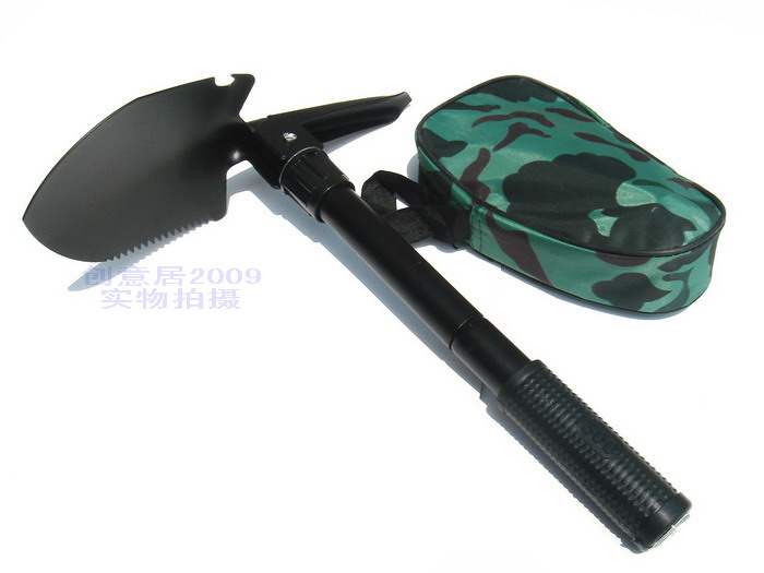 功能:折過來是鍬,反折過來是鎬,不管你是刨坑還是挖土,鍬上還有鋸齒和開瓶器,把手尾部還有指南針,盡情享受軍鍬給你帶來的便利吧! 非常順手的工具,又不占地方,(相當于相機包大?。┲亓績H500克,在家里你可以用它來栽花種草!出外旅游你可以用來刨坑搭帳篷!是居家旅游的***!