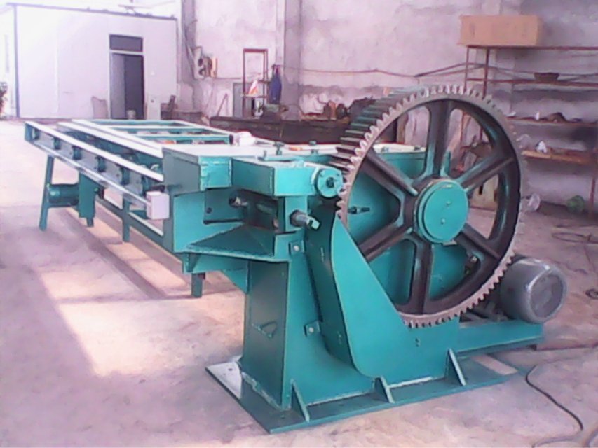 3、縱向驅(qū)動(dòng)架(端架):兩端裝有水平導(dǎo)向輪,可調(diào)整驅(qū)動(dòng)架底部偏心輪對(duì)導(dǎo)軌的壓緊程度,使整機(jī)在運(yùn)動(dòng)中保持穩(wěn)定的導(dǎo)向;圓鋼棒料機(jī)
