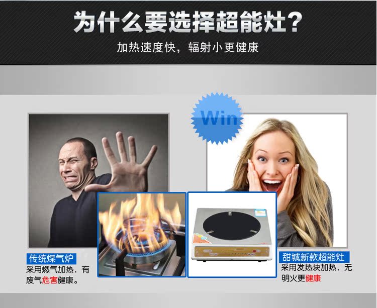 超能灶是電磁爐升級(jí)換代產(chǎn)品,全部采用不銹鋼金屬面板,比電磁爐節(jié)能省電、結(jié)實(shí)耐用、加熱速度快溫度高,還沒(méi)有電磁輻射。超能灶,火力是煤氣的三倍,實(shí)現(xiàn)了電磁爐 ,電陶爐不能爆炒的功能。所以說(shuō)這個(gè)產(chǎn)品非常值得推薦。