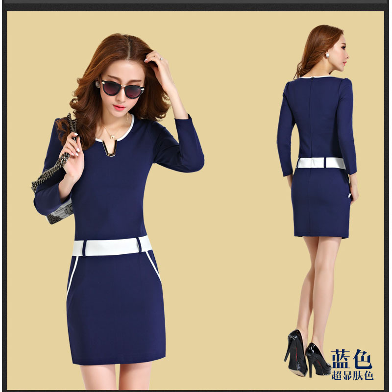 2015春裝新款韓版顯瘦氣質(zhì)女裝ol修身包臀長(zhǎng)袖打底連衣裙廠家***