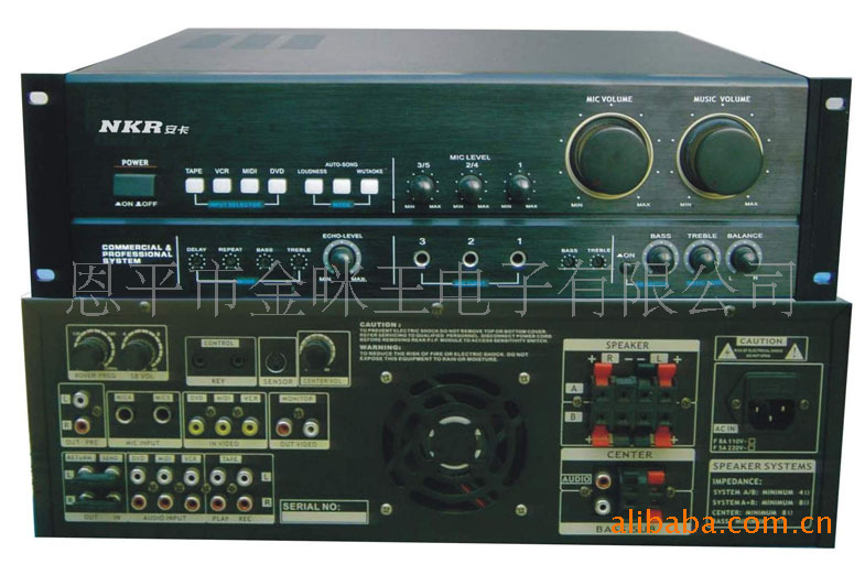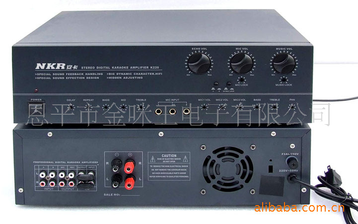 NKR K220參數(shù)規(guī)格: 輸出功率 :150W + 150W(4Ω) 麥克風靈敏度:10mV 輸入靈敏度:200mV 信噪比:>95dB 互調(diào)失真(1KHz,200mV):0.1% 頻率響應:20Hz-20KHz 麥克風音調(diào):80Hz±12dB 12KHz±12dB 回響音調(diào):250Hz±12dB 12KHz±12dB 音調(diào):80Hz±12dB 2.5KHz±8dB 2KHz±12dB 體積:420x350x120