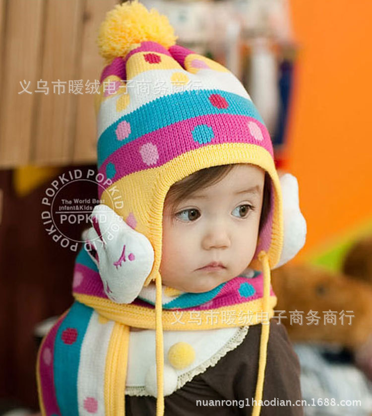 廠家*** 加厚無色差 兔子卡通護耳帽子 圍巾套裝 批發(fā)