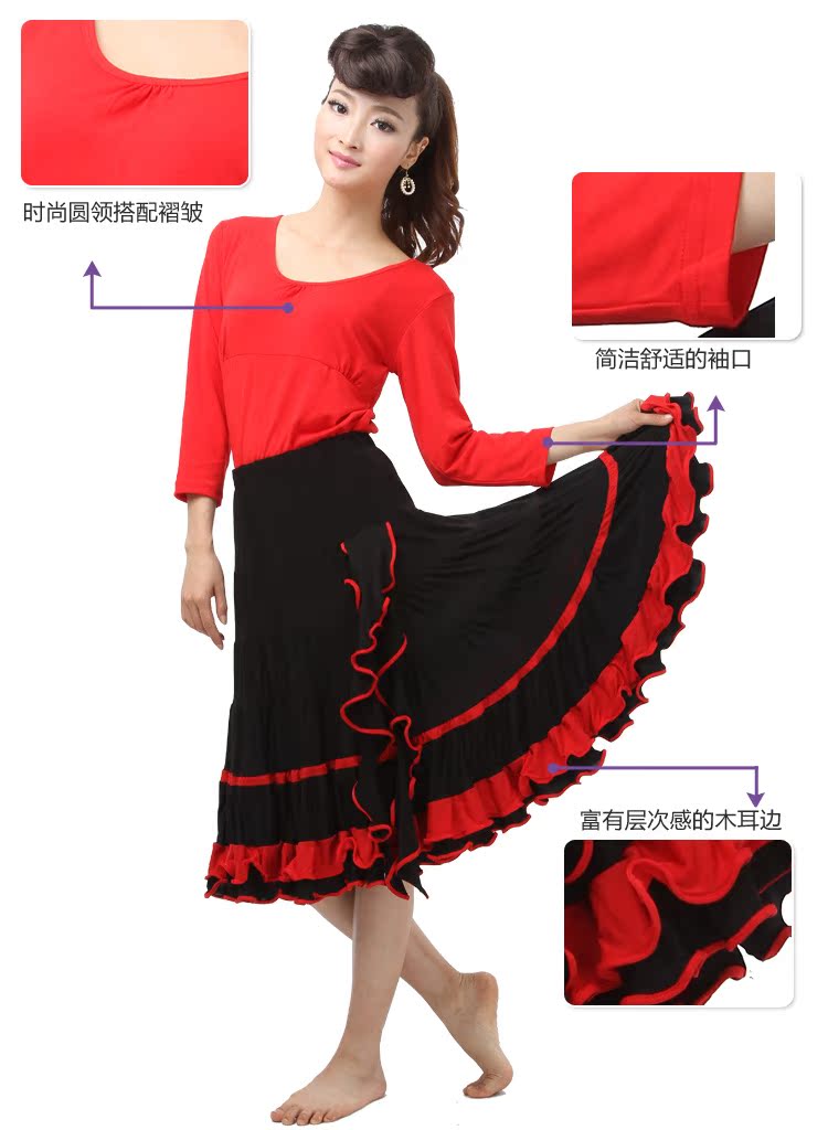 【產(chǎn)品描述】:超大超有質(zhì)感和垂感的牛奶絲廣場(chǎng)舞蹈裙,牛奶絲極富彈性,舒展自如,透氣吸汗,保護(hù)肌膚,不易變形,時(shí)尚耐穿,超大的裙擺讓您在舞動(dòng)的同時(shí)更具韻味。