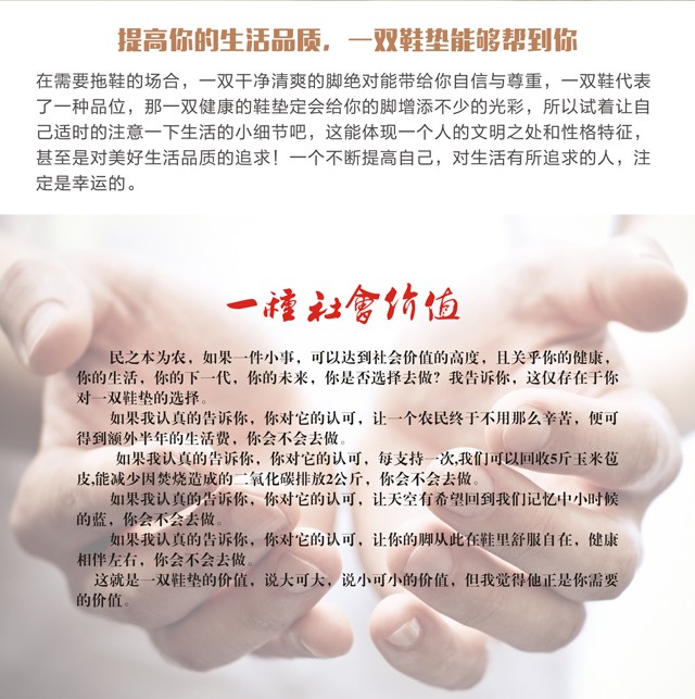 玉米纖維保[jian]鞋墊,綜合利用玉米秸稈使其變廢為寶,我們?cè)谇锛臼占瘡U棄的玉米穗外苞皮經(jīng)生物科技提取后的天然玉米纖維做填充物,加十幾種保[jian]除臭中藥處理后用機(jī)械和半手工制作而成玉米纖維保[jian]鞋墊。