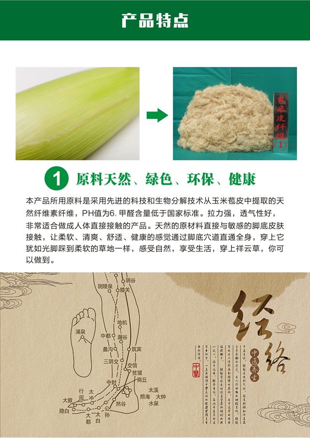 玉米纖維保[jian]鞋墊具有消除腳臭,抑制腳氣,按[mo]吸汗 ,天然草本 ,綠色環(huán)保等功效。