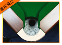 東莞金康020-A美式臺(tái)球桌袋口采用機(jī)械模壓袋口,袋口光滑平整,外形美觀,在其上運(yùn)桿輕松流暢,手感舒服,響袋不吐球。