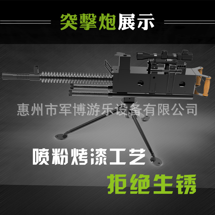 2016年新款游樂氣炮槍,惠州軍博游樂是國內(nèi)一家采用全新絎磨管代替?zhèn)鲃?dòng)的缸體,具有不卡彈,不粘缸等優(yōu)點(diǎn)。多項(xiàng)技術(shù)已經(jīng)申請國家專利。