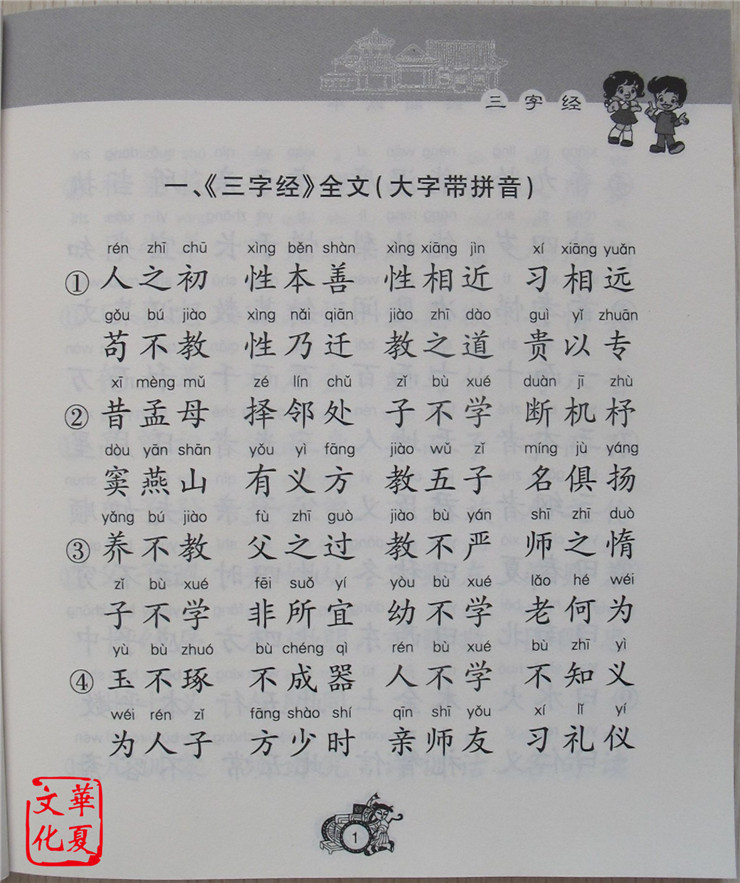 約1100字,1900年,聯(lián)合國教科文組織將《三字經(jīng)》選入《兒童道德叢書》,向全世界發(fā)行和推薦?!度纸?jīng)》是一部高度濃縮的中國文化簡史。學(xué)了《三字經(jīng)》,就等于把中國文化史綱記在腦子里了,對孩子升學(xué)考試和文化修養(yǎng)都有極大幫助。