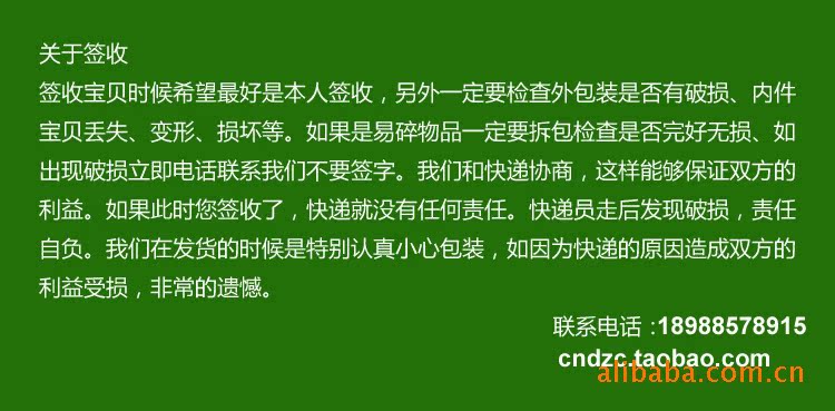 本店默認(rèn)快遞為天天快遞,運(yùn)費(fèi)按照所購產(chǎn)品包裝后重量計費(fèi),分為首重和續(xù)重計算,具體費(fèi)用拍下寶貝時聯(lián)系客服人員修改運(yùn)費(fèi)后付款。