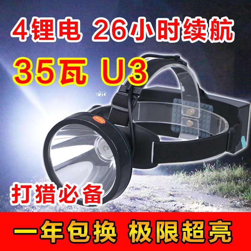35W 頭燈 強(qiáng)光充電遠(yuǎn)射戶外釣魚礦燈 U3鋰電狩獵燈 打獵露營(yíng)包郵