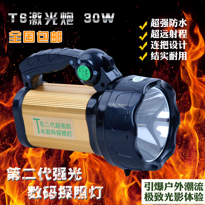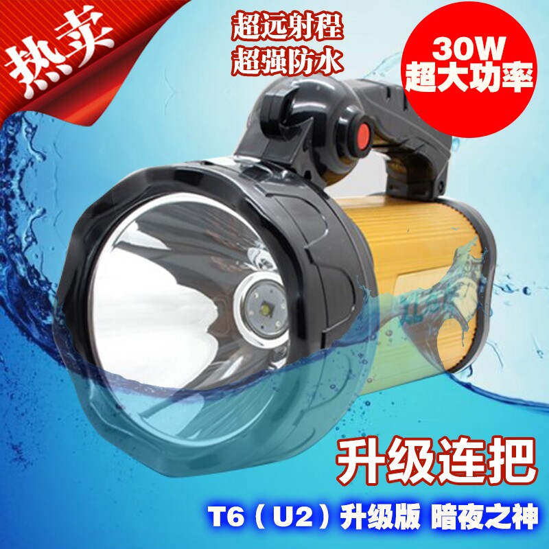 旭朗T6探照燈連把式戶外強(qiáng)光手提燈遠(yuǎn)射手電筒狩獵垂釣防水30W