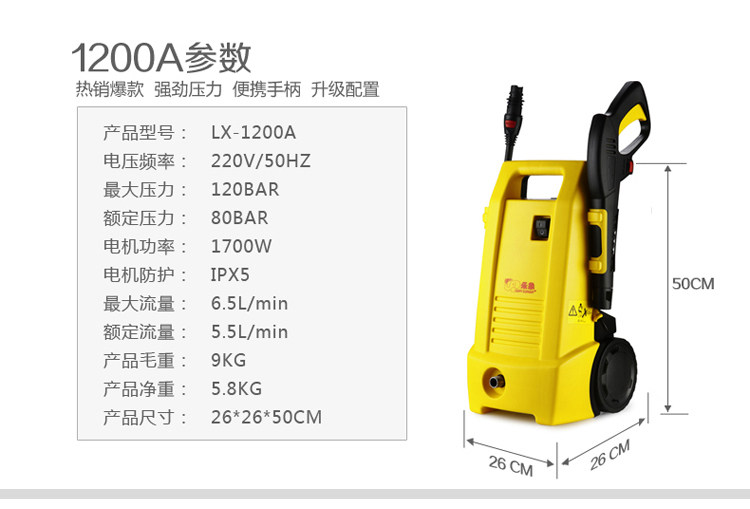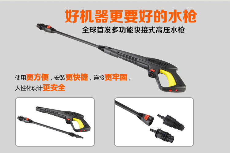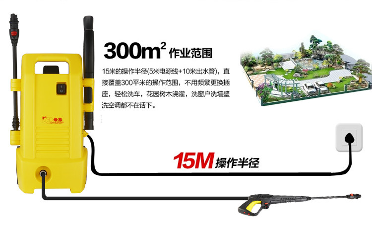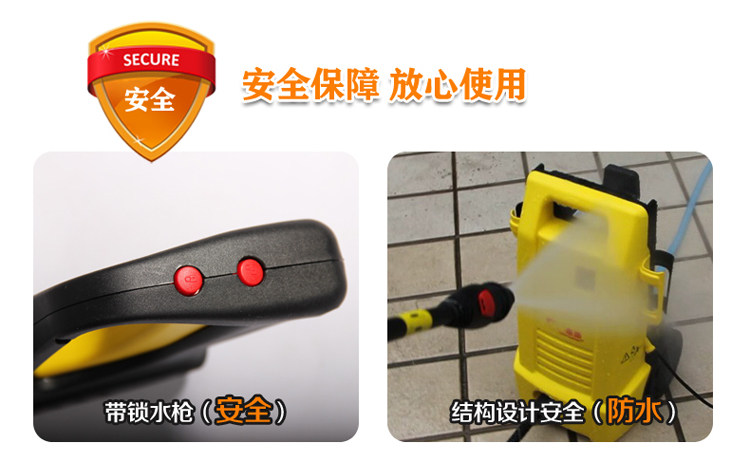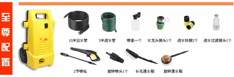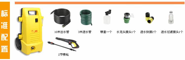 該款機(jī)器定位是家用高壓洗車機(jī),1700W超大功率,水壓強(qiáng)勁,洗車超快;該款機(jī)器采用220V全銅電機(jī)加自吸組件,經(jīng)久耐用;獨(dú)特關(guān)槍停機(jī)功能,節(jié)能環(huán)保;自吸兩用,快插連接,方便快捷;如果是家用清洗、洗車、洗地、洗墻、洗浴室、沖洗青苔等等可直接下單,絕不會(huì)讓您失望的。(注意:由于機(jī)器壓力比較大,請(qǐng)勿將槍口直接對(duì)人噴射)