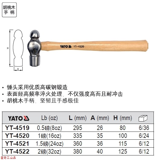 產(chǎn)品名稱:胡桃木柄圓頭錘