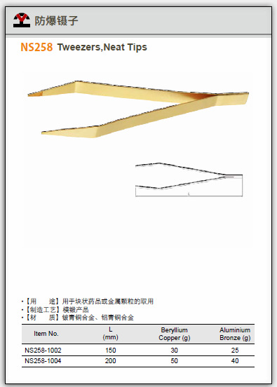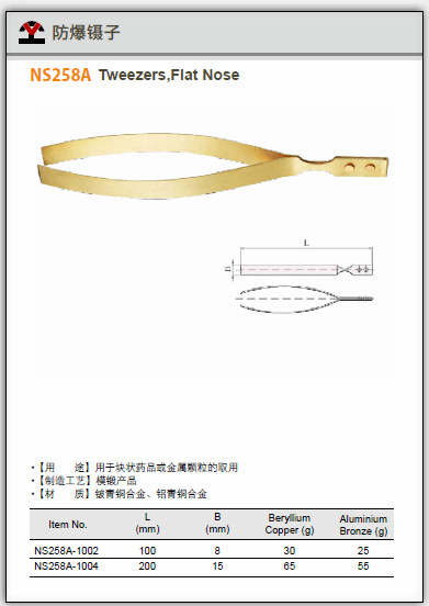 防爆工具是用于特殊場合的手動工具,廣泛應(yīng)用于石油、化工、煉化、采油、采氣、油氣管輸、煤礦、軍工、核電、航空、制藥等行業(yè)。目前國際上認(rèn)可兩種材質(zhì),鋁青銅、鈹青銅。具有敲擊無火花、耐腐蝕、鈹青銅產(chǎn)品還具有無磁特性。