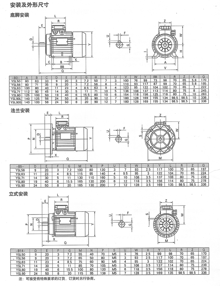 1、訂貨時請注明功率、轉速、電壓、頻率、安裝型式等;