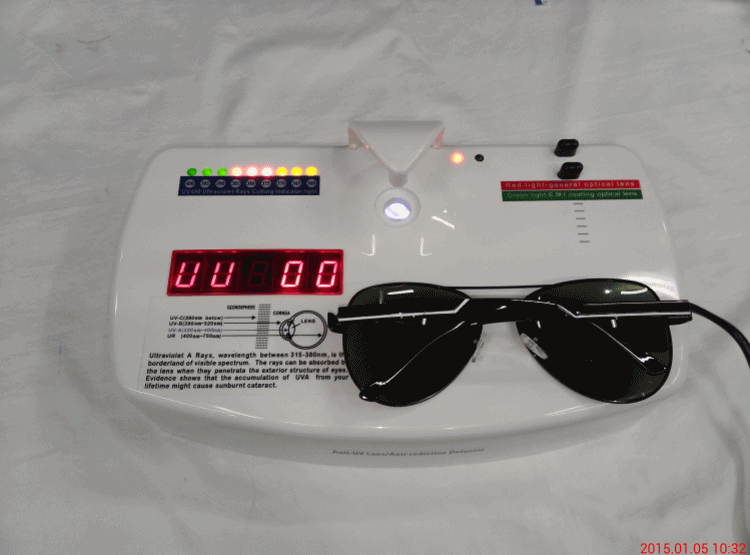 本廠太陽鏡均通過“UV-400”檢測,帶UV400的鏡片才能阻擋全部紫外線,100%地反射、吸收紫外線,而一般的太陽眼鏡只可將光度降低,不能阻擋紫外線。如果一副太陽鏡只能擋住強(qiáng)光而不能阻隔同等量的紫外光,對配戴者而言,將會接受比不戴太陽鏡更多的紫外光(戴上太陽鏡,會降低進(jìn)入人眼光通量,致使配戴者瞳孔增大反而使進(jìn)入的紫外線更多),進(jìn)一步加深了對眼睛的損害。