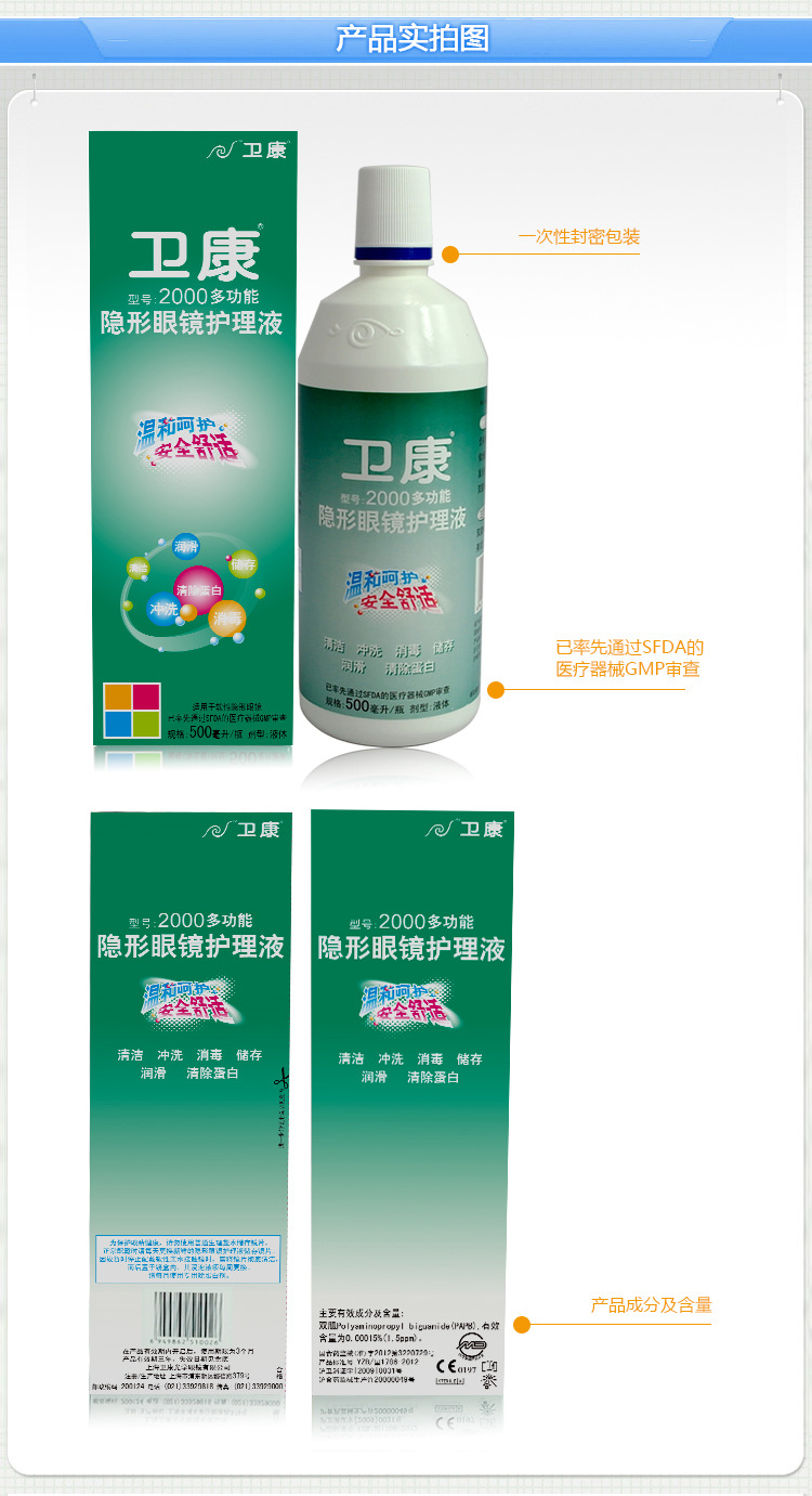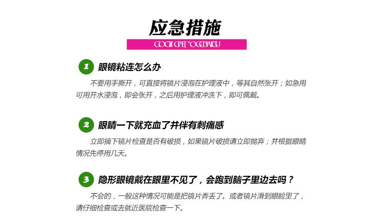 開瓶前請檢查鏡片是否無色差,是否完好無裂痕。