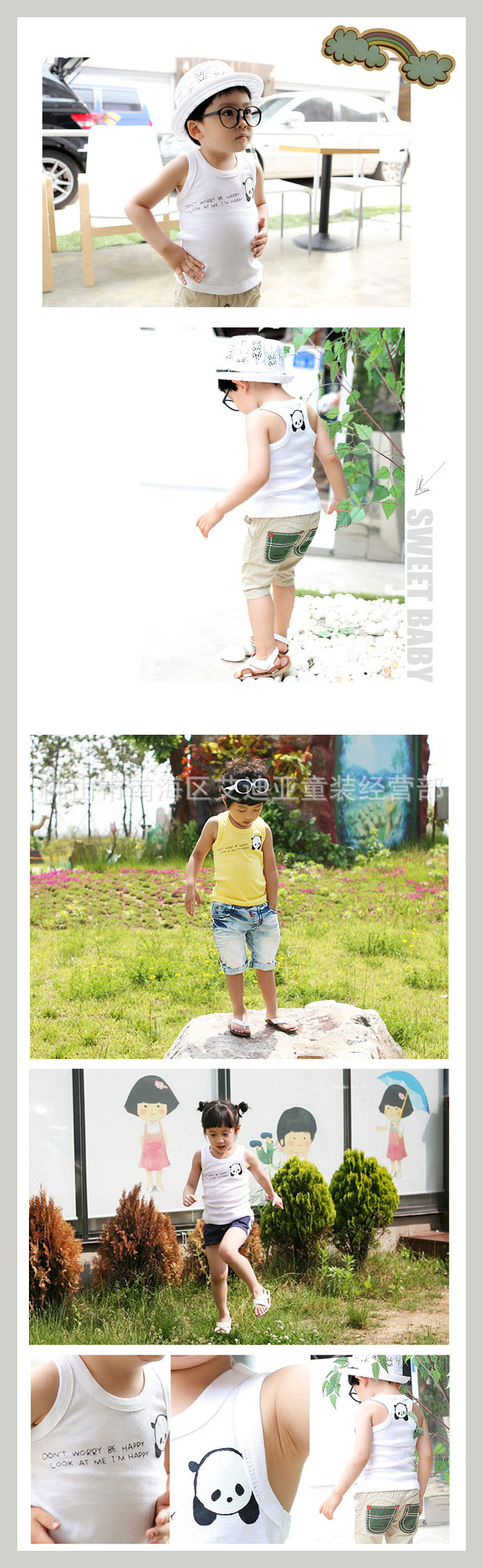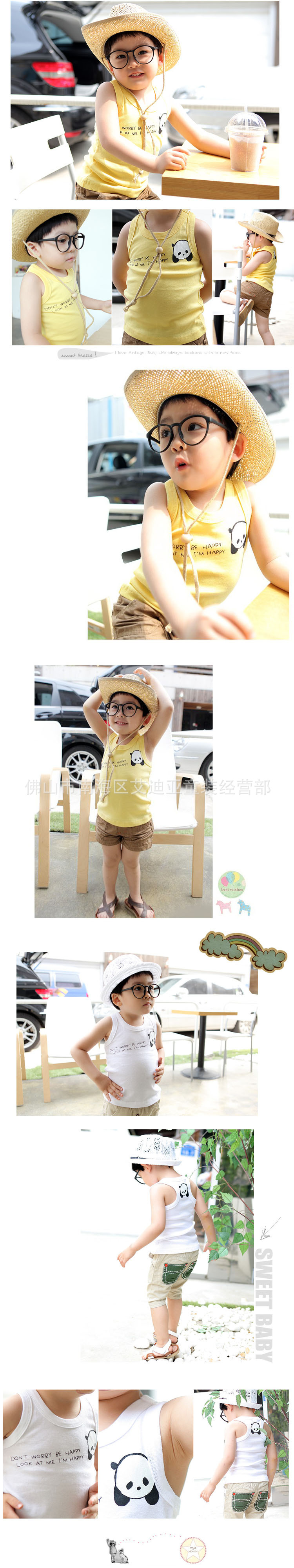 2012夏 韓版 純棉特價 熊貓背心工字糖果色 童T恤