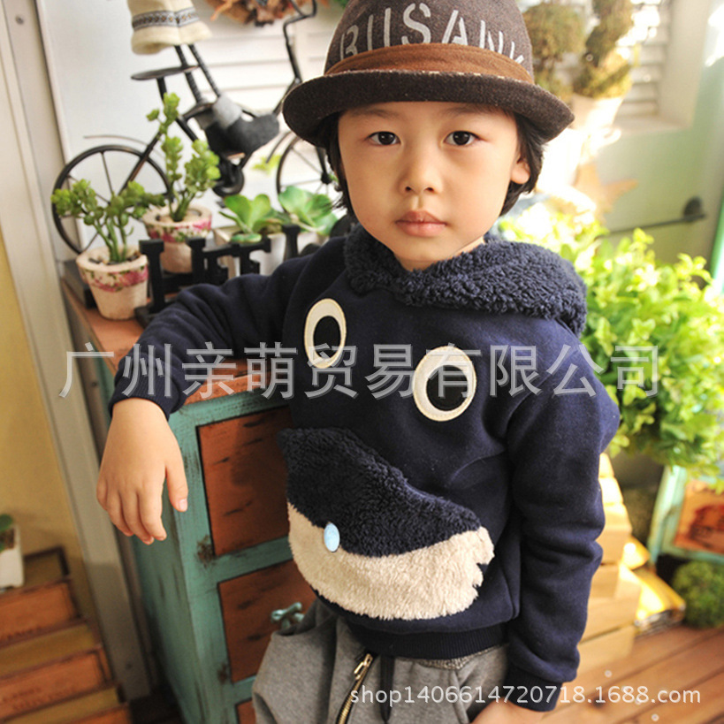 2014秋冬新款兒童連帽抓絨童衛(wèi)衣 韓版外貿(mào)童裝外套批發(fā)