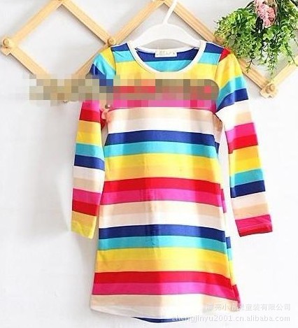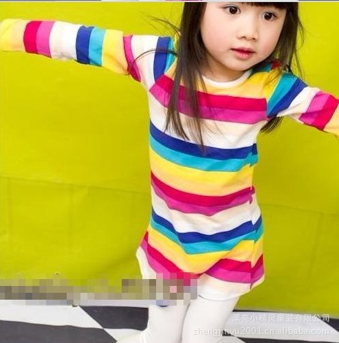 非??蓯鄣囊豢钐籽b,鮮艷亮麗的彩虹條紋連衣裙,加上一個(gè)大愛心天使的小坎肩,不讓人不注目哦,