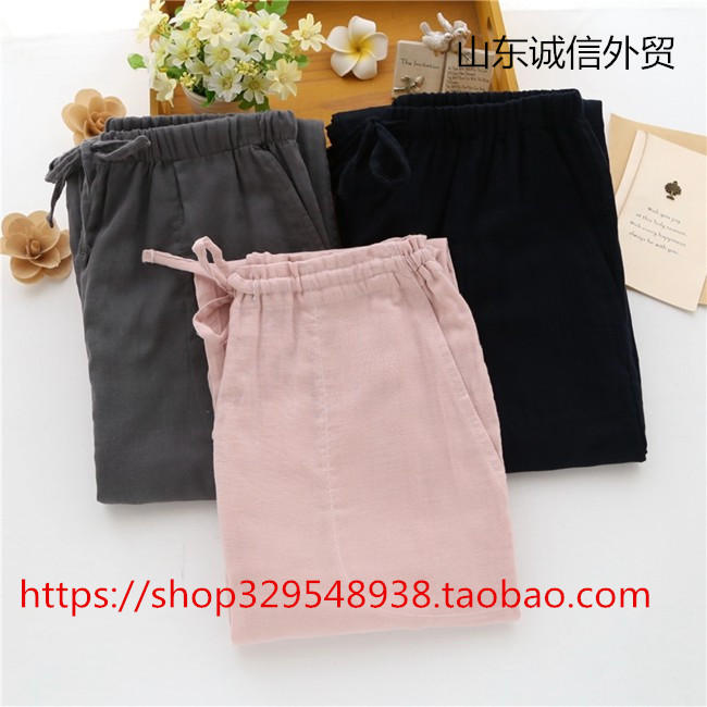 細(xì)密柔軟的紗布面料,腰部有松緊帶和抽繩,( 兩側(cè)有側(cè)兜)。很方便的一款,居家休閑,外出散步都不錯(cuò)。