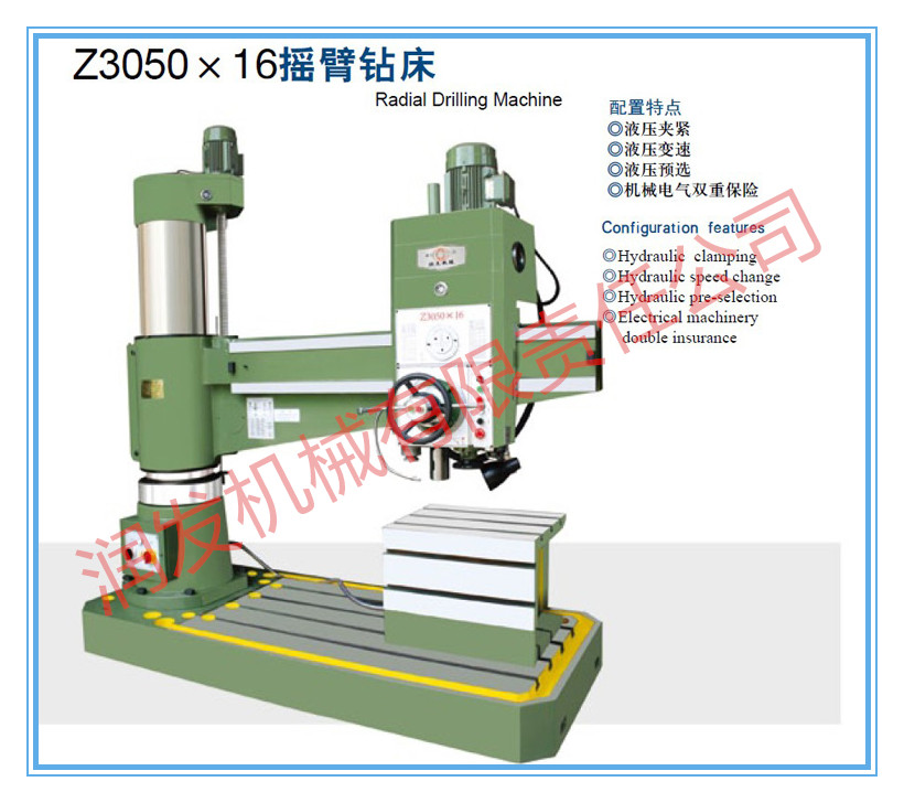 Z3050×16機械搖臂鉆床是我廠30多年設(shè)計經(jīng)驗的專業(yè)工程師設(shè)計、研制的產(chǎn)品,它具有結(jié)構(gòu)簡單實用、操作、維修方便等特點,而且將其它鉆床的優(yōu)點聚為一體,使之加大了鉆床的加工范圍,如鏜孔、攻絲、套絲、锪平面、鉆、鉸、擴孔等功能。廣泛用于中小型企業(yè)、鄉(xiāng)鎮(zhèn)和個體工業(yè)的機械加工。
