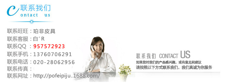 我們將秉承“誠信、信心、信任”的經(jīng)營理念以客戶滿意度為指導(dǎo)思想,不斷設(shè)計(jì)生產(chǎn)新產(chǎn)品,滿足新老客戶的需求。廣州市珀非皮具貿(mào)易有限公司熱誠的期待與各方客戶攜手合作共創(chuàng)美好未來。