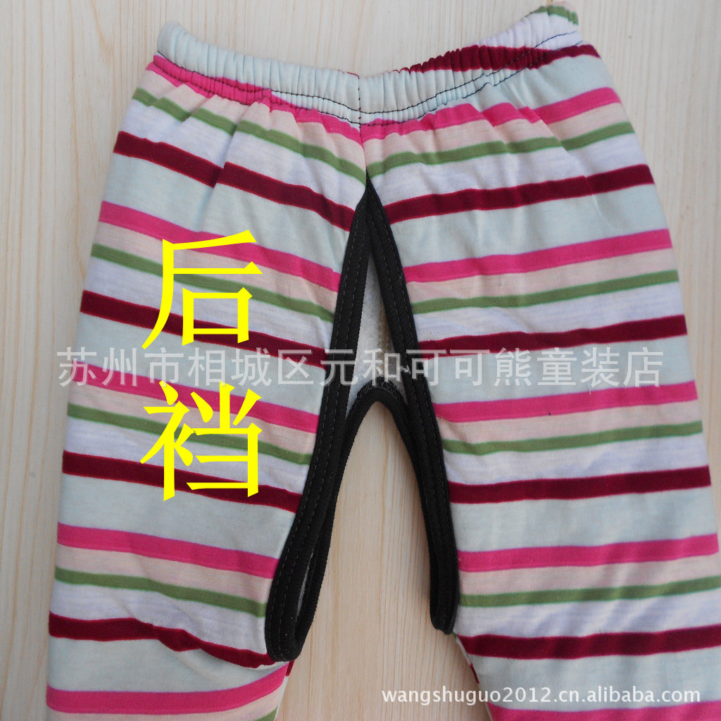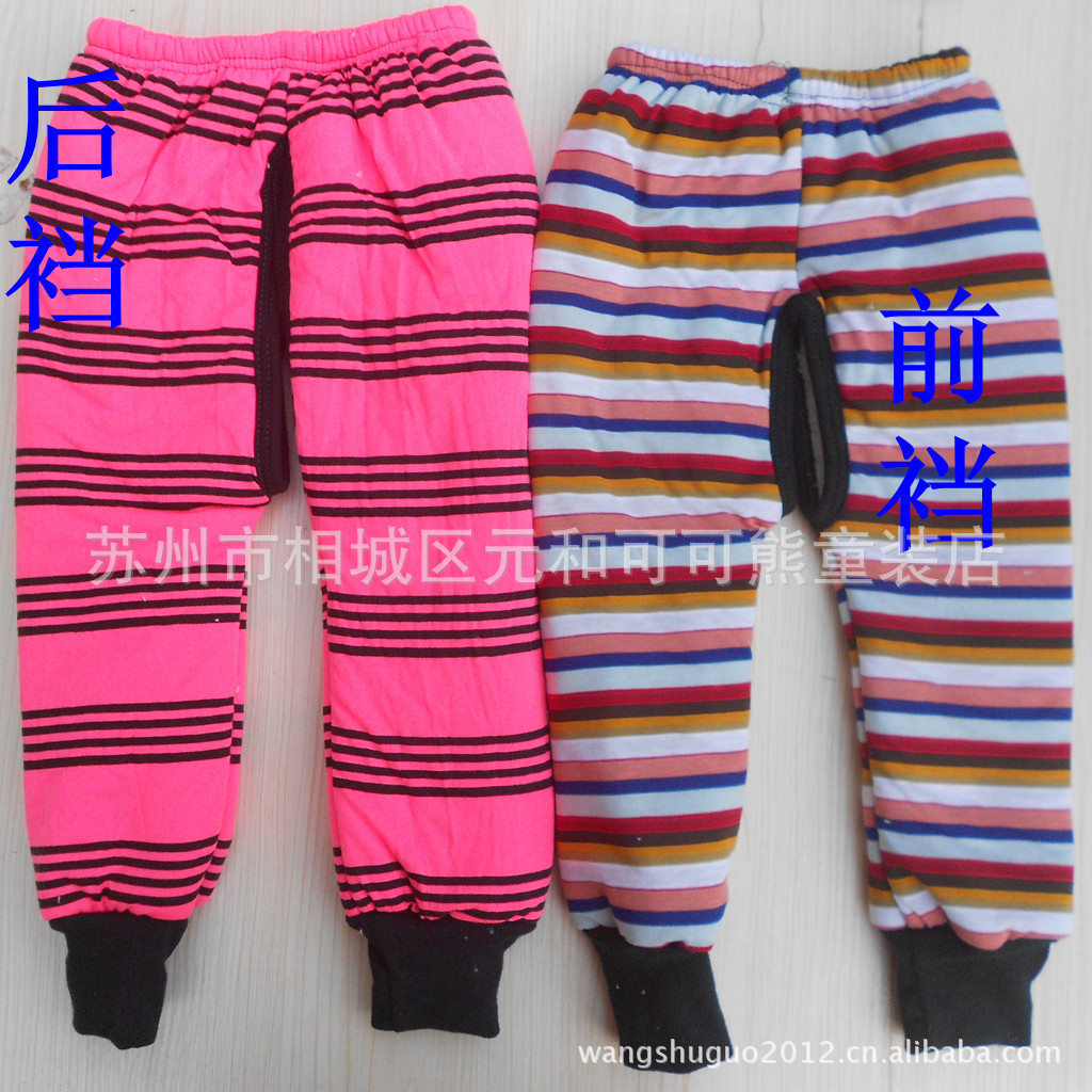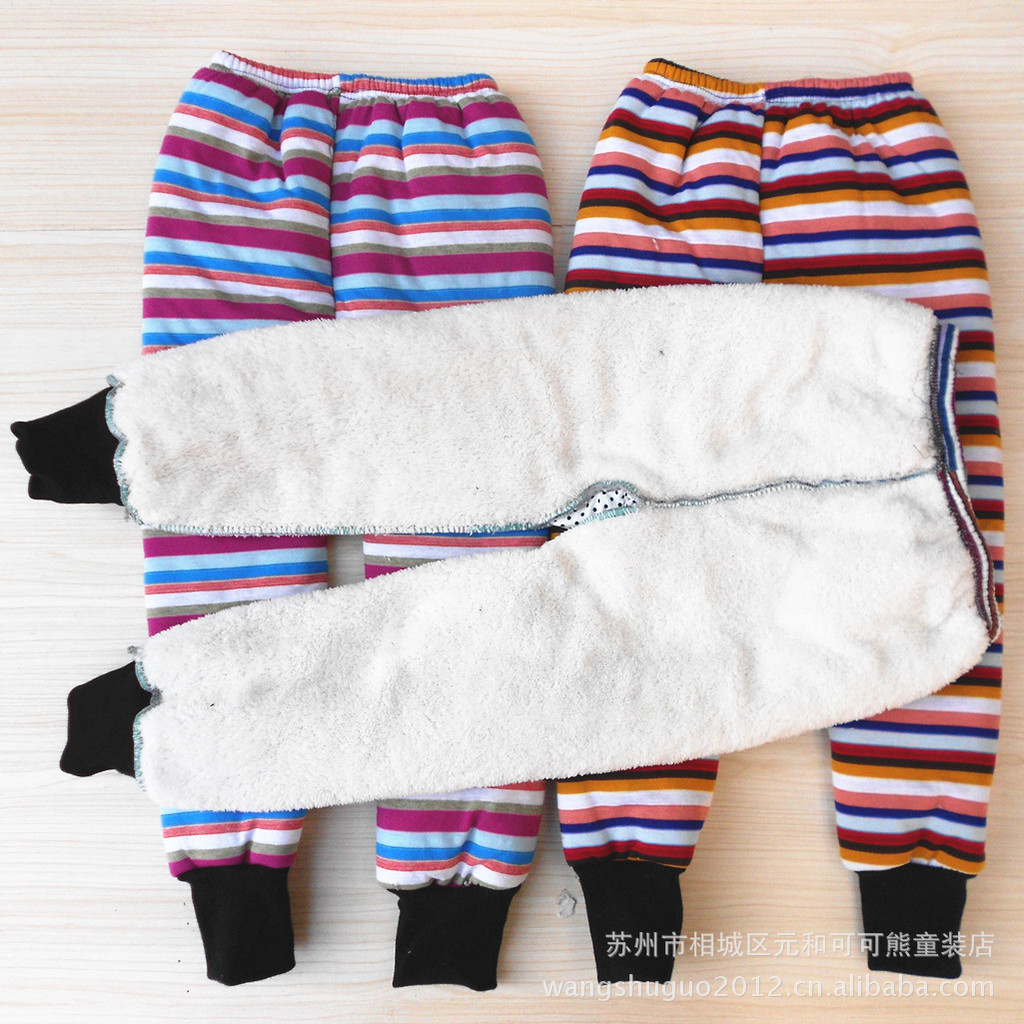 【品名】:羊羔絨加厚開襠棉褲 條紋保暖棉褲 童褲
