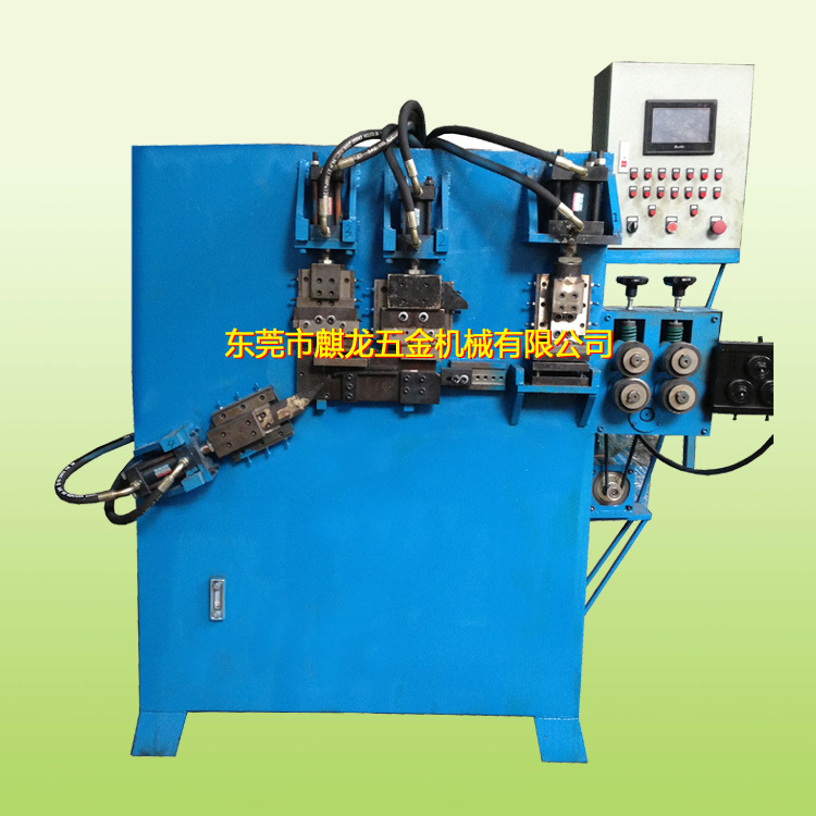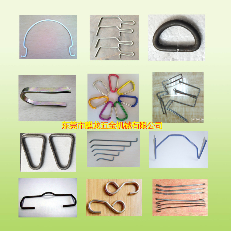 用途:此機(jī)械適用于鋼線、鐵線、鋁線、銅線、不銹鋼線制造不同形狀例如:打包扣、耳鉤、D扣、S扣、9字針、五角星、登山鉤、掛鉤、三角扣、四方扣、插銷、一字夾等各種各類的產(chǎn)品,只需更換模具即可。多用作制造在五金行業(yè)、玩具行業(yè)、文具行業(yè)、制衣行業(yè)、燈飾行業(yè)、首飾行業(yè),電子行業(yè)等電器產(chǎn)品及工藝品等行業(yè)用的線類產(chǎn)品此機(jī)送料較長(zhǎng),適合于做一些稍小的五金件。如用作制造衣架鉤,可以一次過做出折頭或撞圓頭的產(chǎn)品