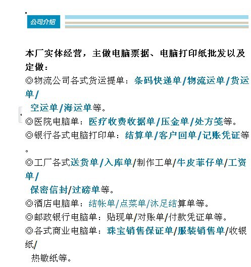 廣州市栩騰辦公用品有限公司自產(chǎn)自銷(xiāo)及代理批發(fā)的電腦打印紙、不干膠條碼紙、收銀紙、復(fù)印紙、碳帶、辦公用品、辦公設(shè)備、勞保用品等、電腦打印紙、不干膠條碼紙、收銀紙、復(fù)印紙、碳帶、辦公用品、辦公設(shè)備、勞保用品、學(xué)習(xí)用品暢銷(xiāo)市場(chǎng),在行業(yè)當(dāng)中享有較高的地位,主要客戶包括倉(cāng)儲(chǔ)物流、商超零售、工業(yè)制造、商務(wù)辦公、衛(wèi)生文教等,公司與多家零售商和代理商建立了長(zhǎng)期穩(wěn)定的合作關(guān)系。我們的經(jīng)營(yíng)宗旨是:“用服務(wù)與真誠(chéng)來(lái)?yè)Q取你的信任與支持,互惠互利,共創(chuàng)雙贏!” 我公司愿與國(guó)內(nèi)外各界同仁志士竭誠(chéng)合作,共創(chuàng)未來(lái)!