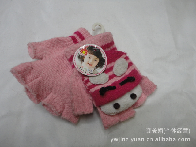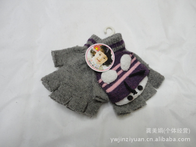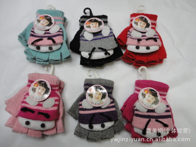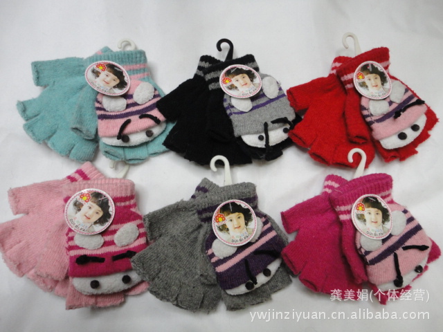 韓版時(shí)尚羊毛提花小孩半指翻蓋手套 針織手套 魔術(shù)手套