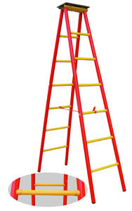 絕緣人字梯材質(zhì)選用環(huán)氧樹脂結(jié)合銷棒技術(shù),整體無金屬結(jié)構(gòu)組成。梯撐、梯腳防滑設(shè)計不易疲勞,安全程度高,絕緣性能強;吸水力低,耐腐蝕,重量輕,攜帶方便,機械性能高,適用于500kV以下電壓等級帶電經(jīng)路作業(yè);變電維護(hù)作業(yè)。