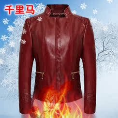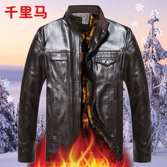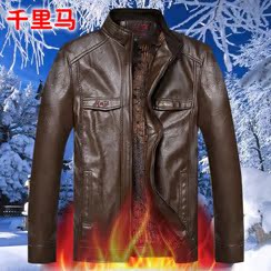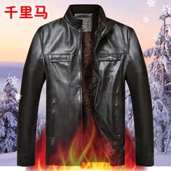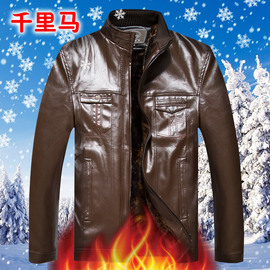 2015秋冬中老年男式加絨立領(lǐng)水洗跑江湖擺地?cái)傂蓍e夾克PU皮衣外套