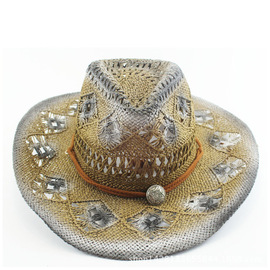 1.產品名稱: 美國西部牛仔帽沙灘遮陽帽子 歐美風男士夏天鏤空做舊草帽帶束線