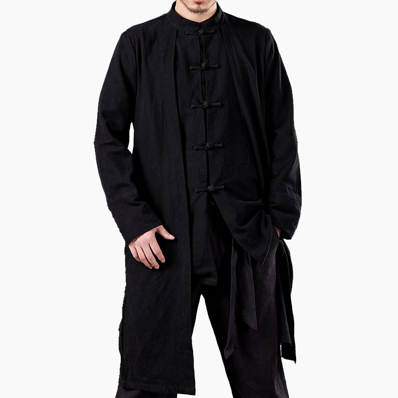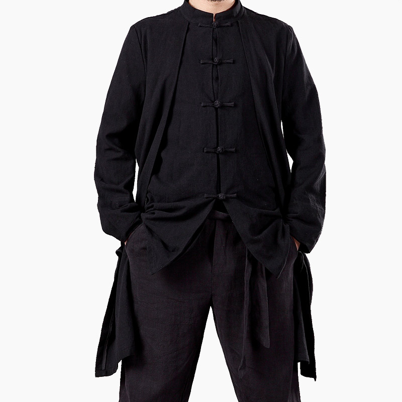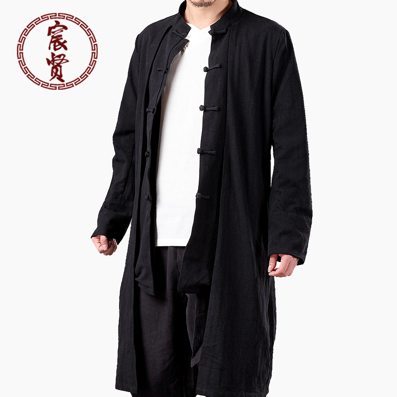 中國風唐裝男士棉麻休閑外套假兩件男長款青年風衣上衣禪服定制