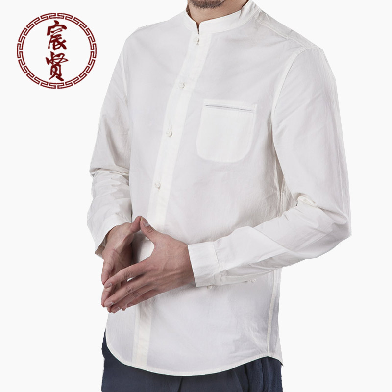 秋冬新品唐裝男士休閑長袖襯衫亞棉麻上衣男式改良盤扣立領漢服男