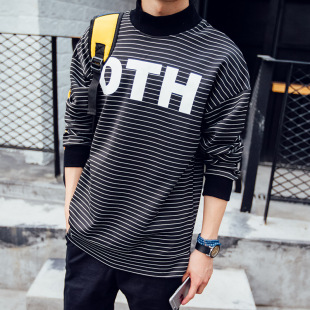 2015秋冬新款高領(lǐng)個(gè)性復(fù)古店主風(fēng) 字母條紋經(jīng)典時(shí)尚潮男士衛(wèi)衣