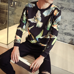 2015街頭街舞飛鳥圖案 休閑太空棉長袖圓領(lǐng)動(dòng)物印花套頭衛(wèi)衣男