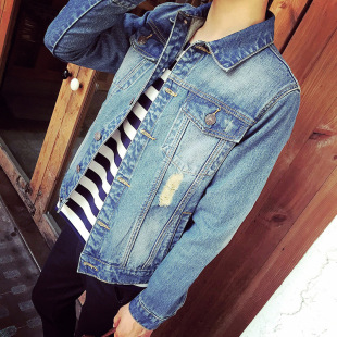 2015秋冬牛仔夾克外套 背后女神印花 修身潮男牛仔衣夾克衫 夜店