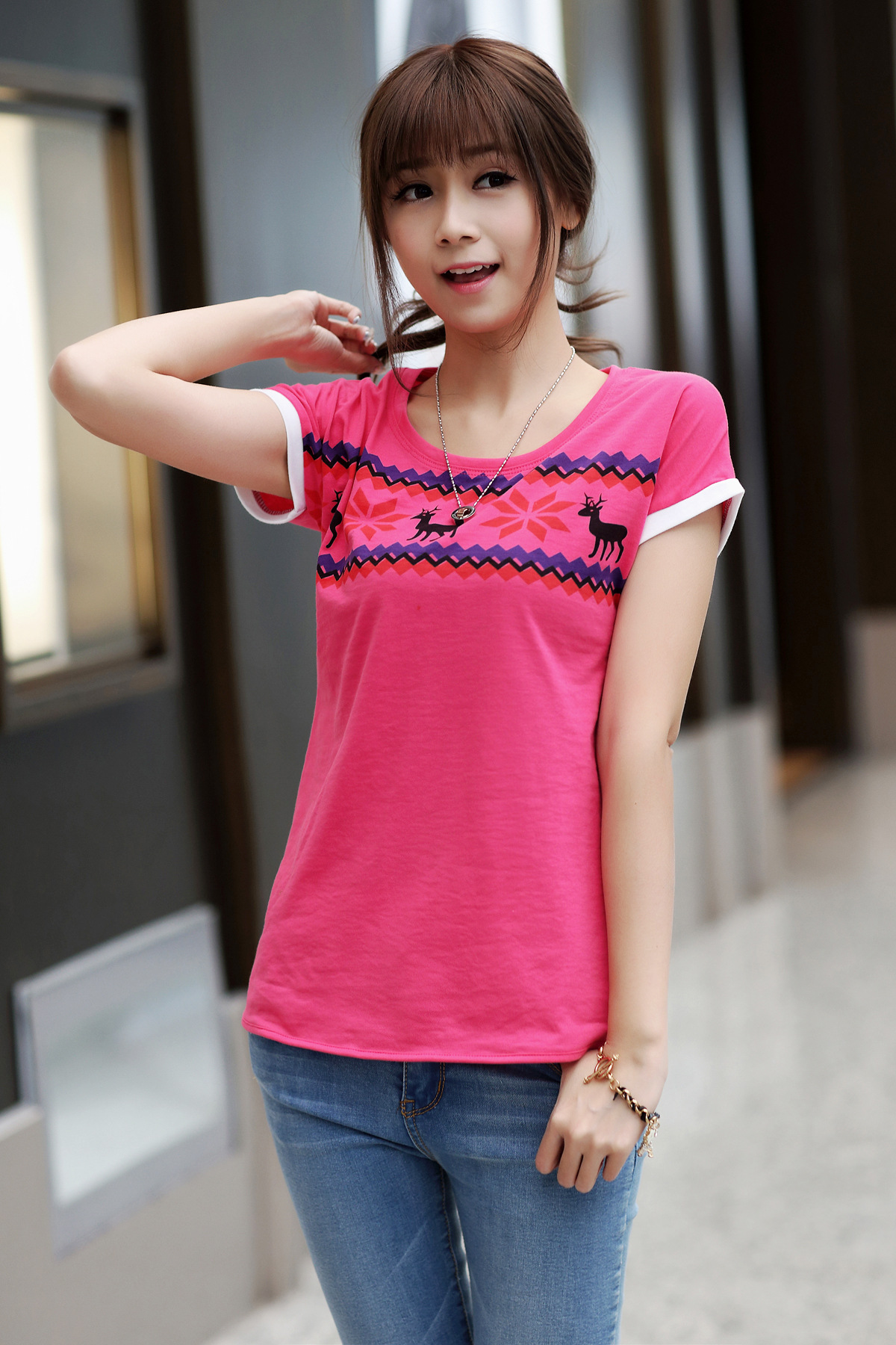 特地為大部分MM精心自制作而成!胖的和瘦的MM都能選擇此款,您的優(yōu)雅氣質(zhì),高貴大方。就讓此款為您盡情綻放,面料厚實手感柔軟細膩,質(zhì)地優(yōu)良,吸濕性強,穿著舒適;領(lǐng)子為圓領(lǐng),獨特的前短后長彰顯人們追求時尚潮流的完美體現(xiàn),盡顯時代風采!