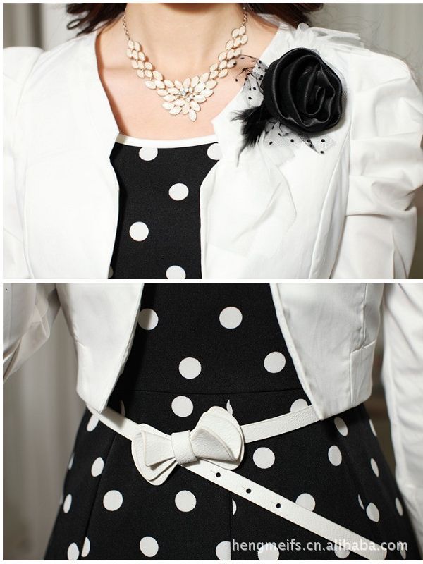 2012熱賣新款春裝,韓版OL褶皺修身兩件套連衣裙(配腰帶、胸花)