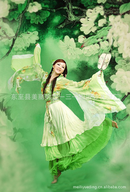 飛絮悠揚(yáng) 飄逸氣質(zhì)翠綠色唐裝改良版漢服仙女服裝影樓寫(xiě)真服GT08